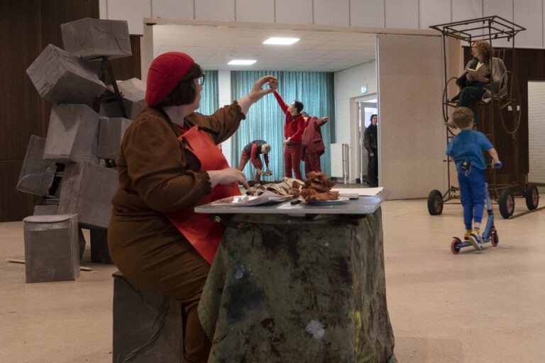 Voor die inspiratie gingen we op pad met ons Nabij-voertuig. We bezochten de voetbalclub, de weekmarkt, een kampeerboerderij en ga zo maar door. In het voertuig deelden mensen op film hun ideeën, herinneringen, verhalen en wensen over Landpark Assisië en de dorpen en landerijen eromheen. Ze konden ook iets moois achterlaten in de grote kast. Met al die verhalen, spullen en ideeën gingen wij aan de slag! Met als resultaat een voorstelling die het Landpark Assisië een beetje meer nabij de omgeving brengt.