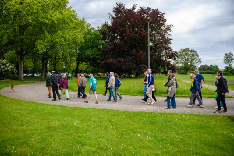 Twee gidsen, Fran en Cis, namen hen mee op een theatrale rolstoeltoegankelijke ontdekkingsreis (± 1,5 km). Daarin werden ze verrast met de rijke historie, bijzondere natuur en inspirerende kunstenaars die Landpark Assisië te bieden heeft.