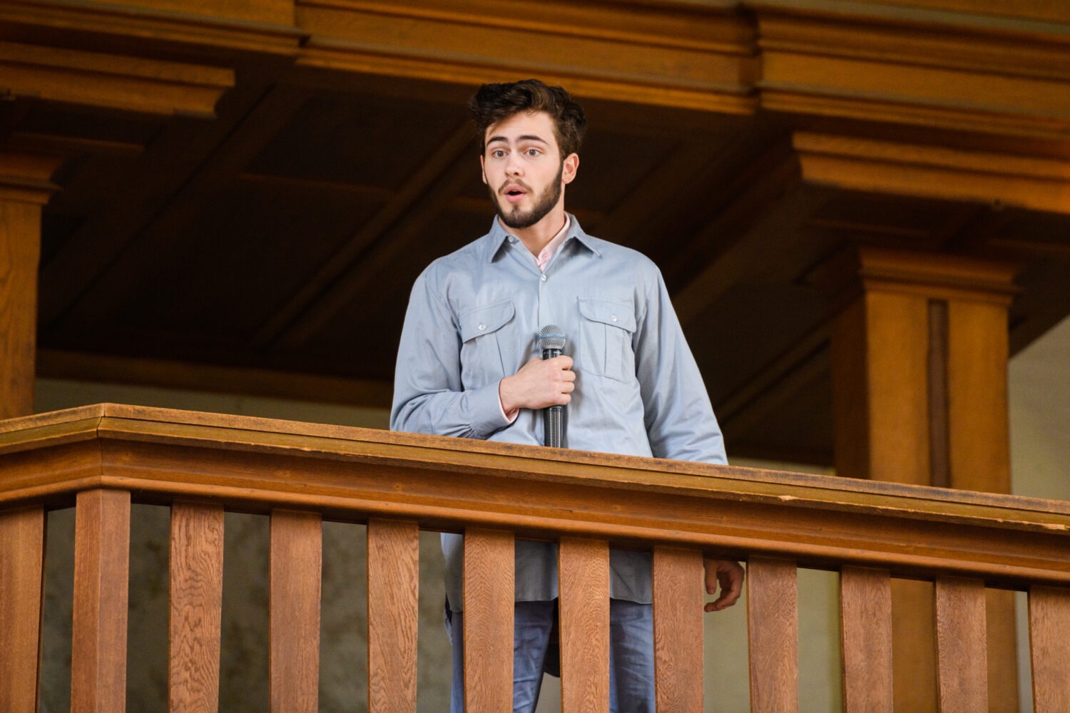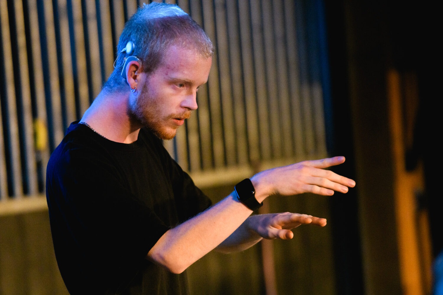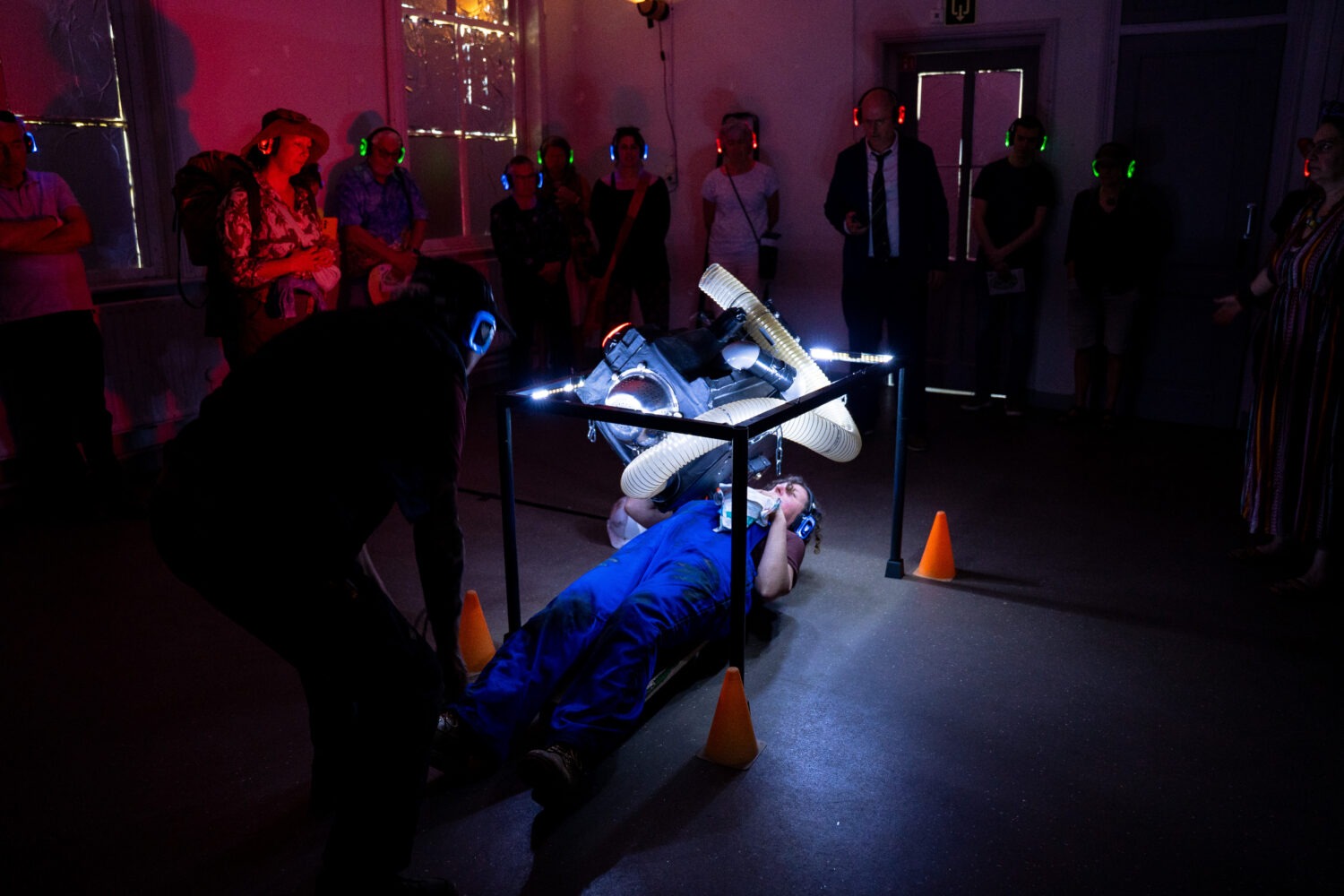 Jonge internationale talenten van Fontys Academy for Music and Performance Art omlijsten de voorstelling muzikaal, waarin het perspectief van jou als bezoeker letterlijk kantelt.