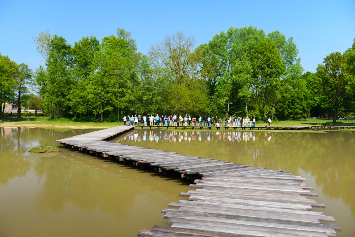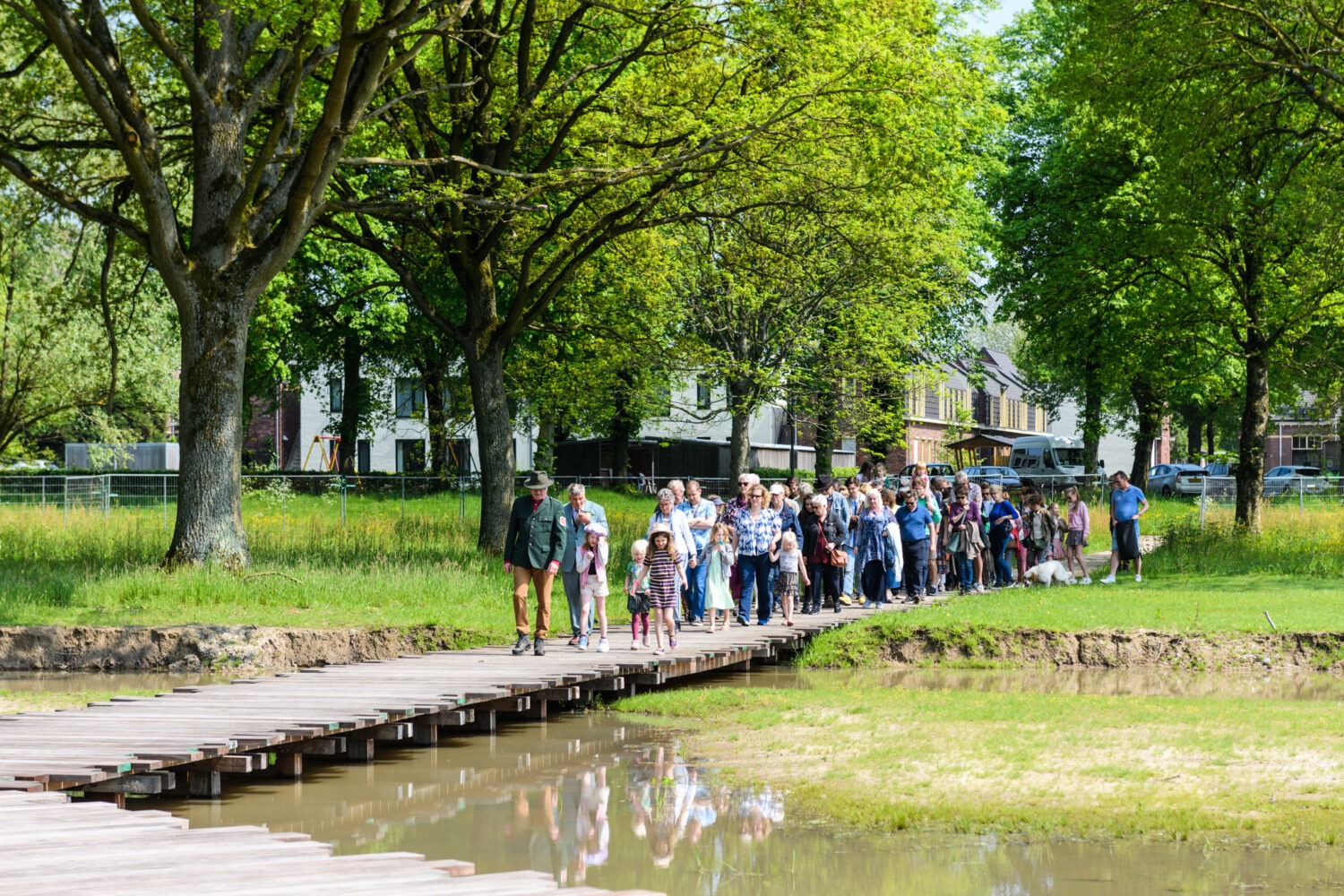 Twee gidsen, Fran en Cis, namen hen mee op een theatrale rolstoeltoegankelijke ontdekkingsreis (± 1,5 km). Daarin werden ze verrast met de rijke historie, bijzondere natuur en inspirerende kunstenaars die Landpark Assisië te bieden heeft.