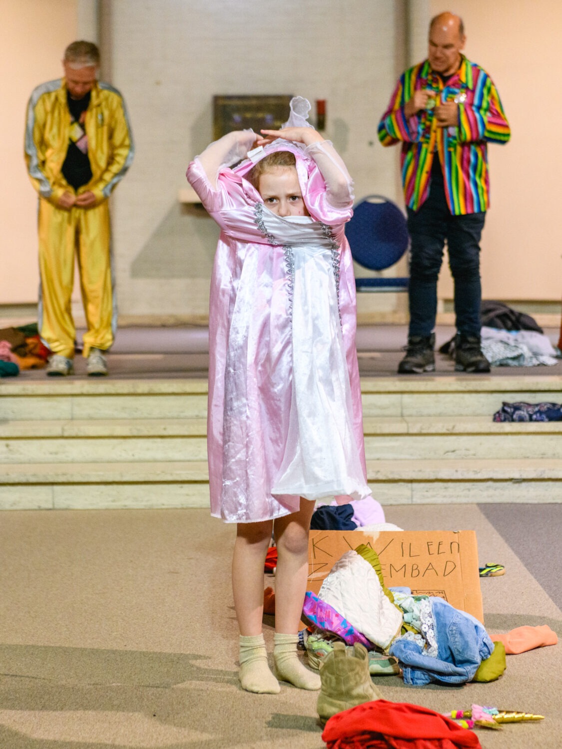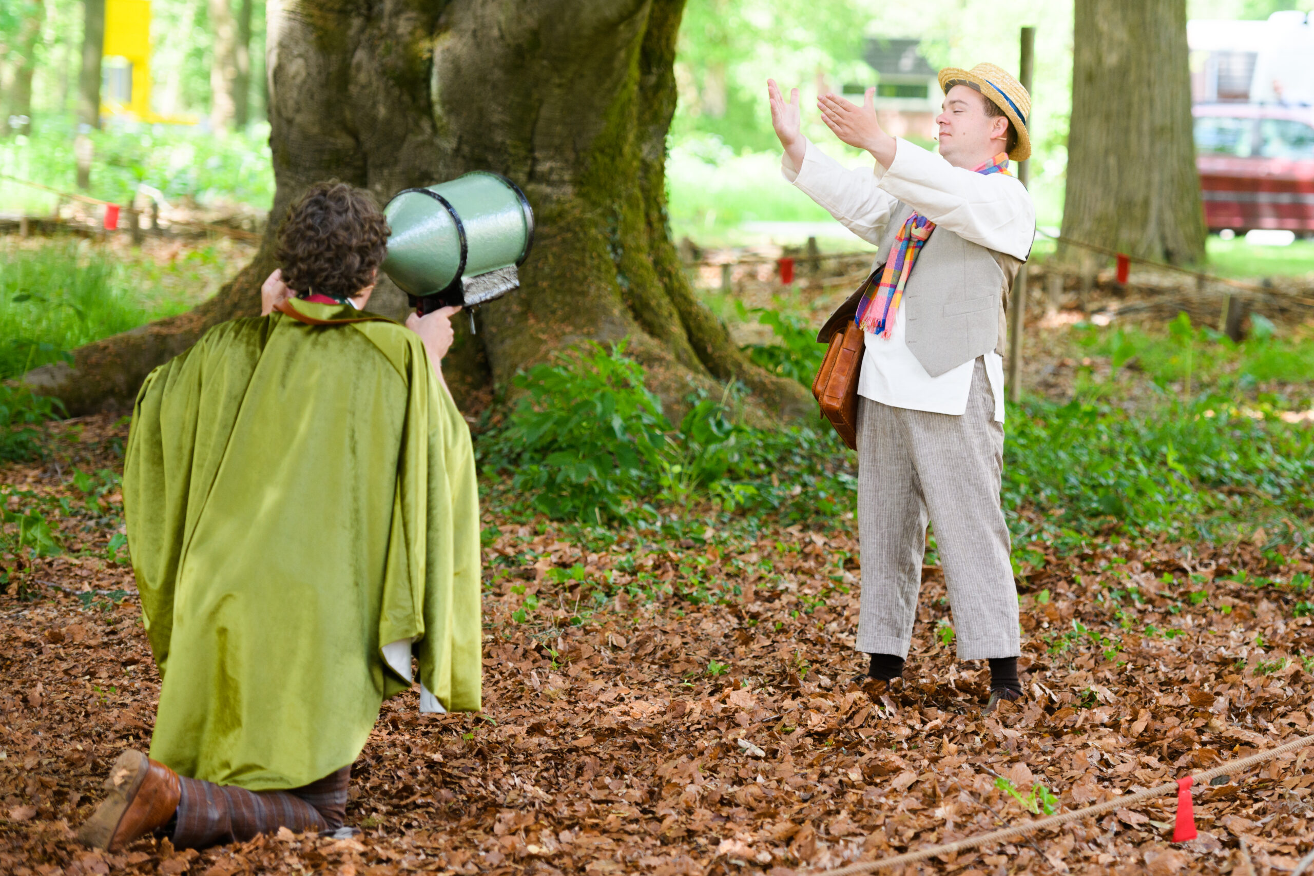Voor die inspiratie gingen we op pad met ons Nabij-voertuig. We bezochten de voetbalclub, de weekmarkt, een kampeerboerderij en ga zo maar door. In het voertuig deelden mensen op film hun ideeën, herinneringen, verhalen en wensen over Landpark Assisië en de dorpen en landerijen eromheen. Ze konden ook iets moois achterlaten in de grote kast. Met al die verhalen, spullen en ideeën gingen wij aan de slag! Met als resultaat een voorstelling die het Landpark Assisië een beetje meer nabij de omgeving brengt.