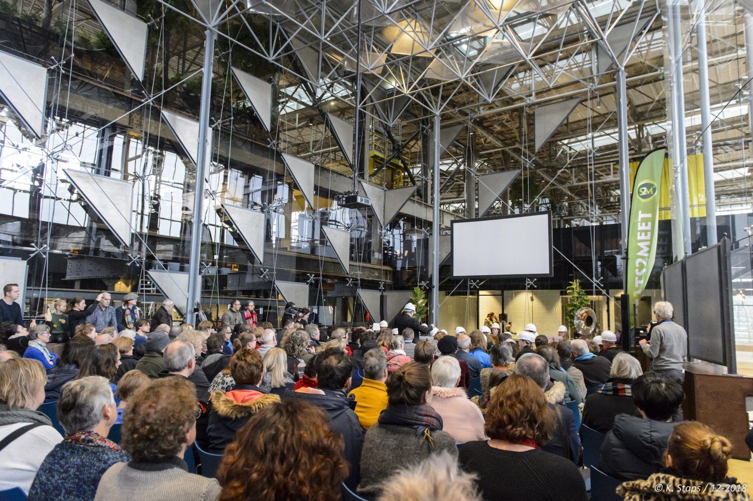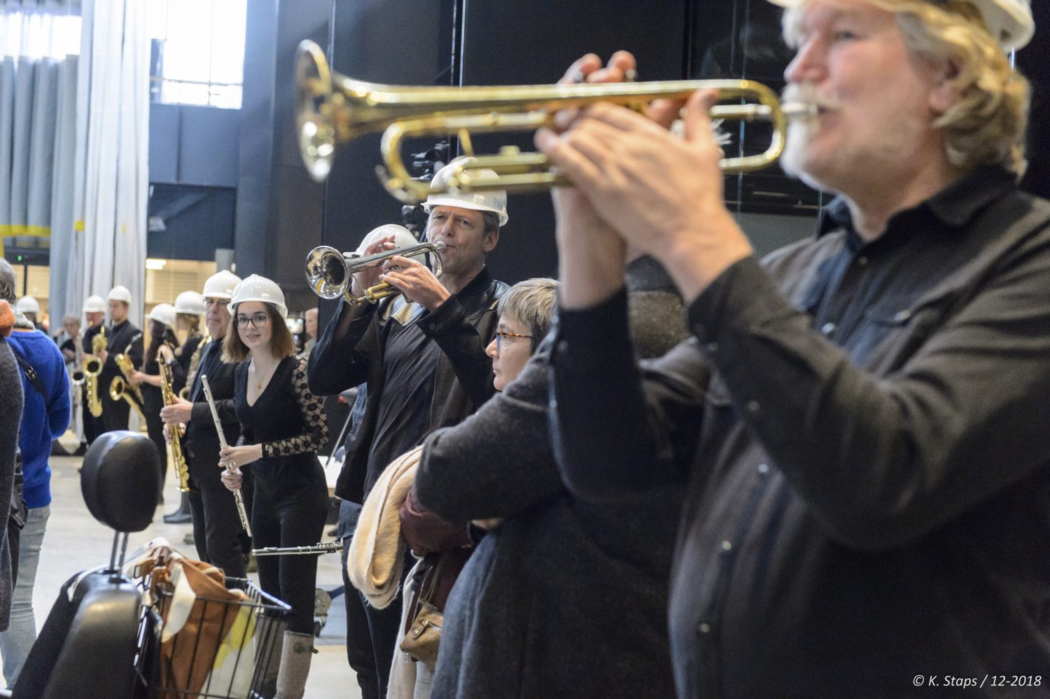 Muziekperformance met honderd muzikanten in de LocHal, Tilburg