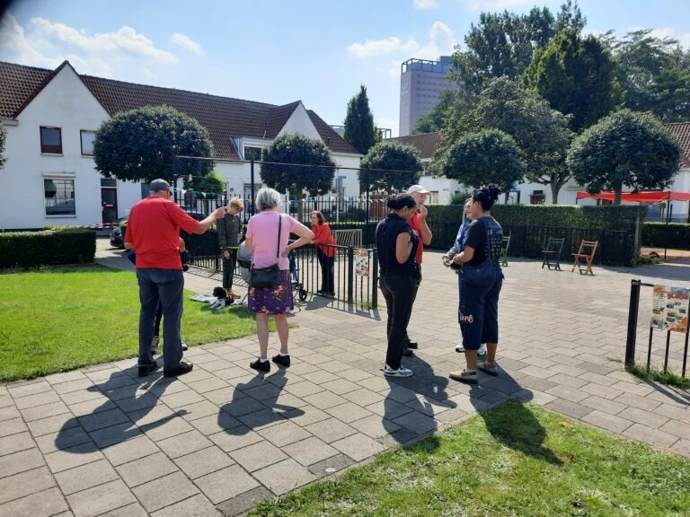 Aan het begin van de zomervakantie trokken de spelers van EELT de buurt in, om in gesprek te gaan met bewoners over hun ideeën over de toekomst. We haalden de ‘vibe’ op in de wijk. Dat is terug te vinden in deze versie van Bestemming Onbekend. Zo ontdekten we dat er bewoners zijn die met hoop en verlangen uitkijken naar de grote woningbouwprojecten omdat ze verwachten dat die de hele omgeving zullen verbeteren. Adere bewoners willen liefst dat alles bij het oude blijft en zijn heel trots op de verbinding van de buurt met het ‘Spoor’. De buurt is immers gebouwd om de werknemers van het ‘Spoor’ te huisvesten.