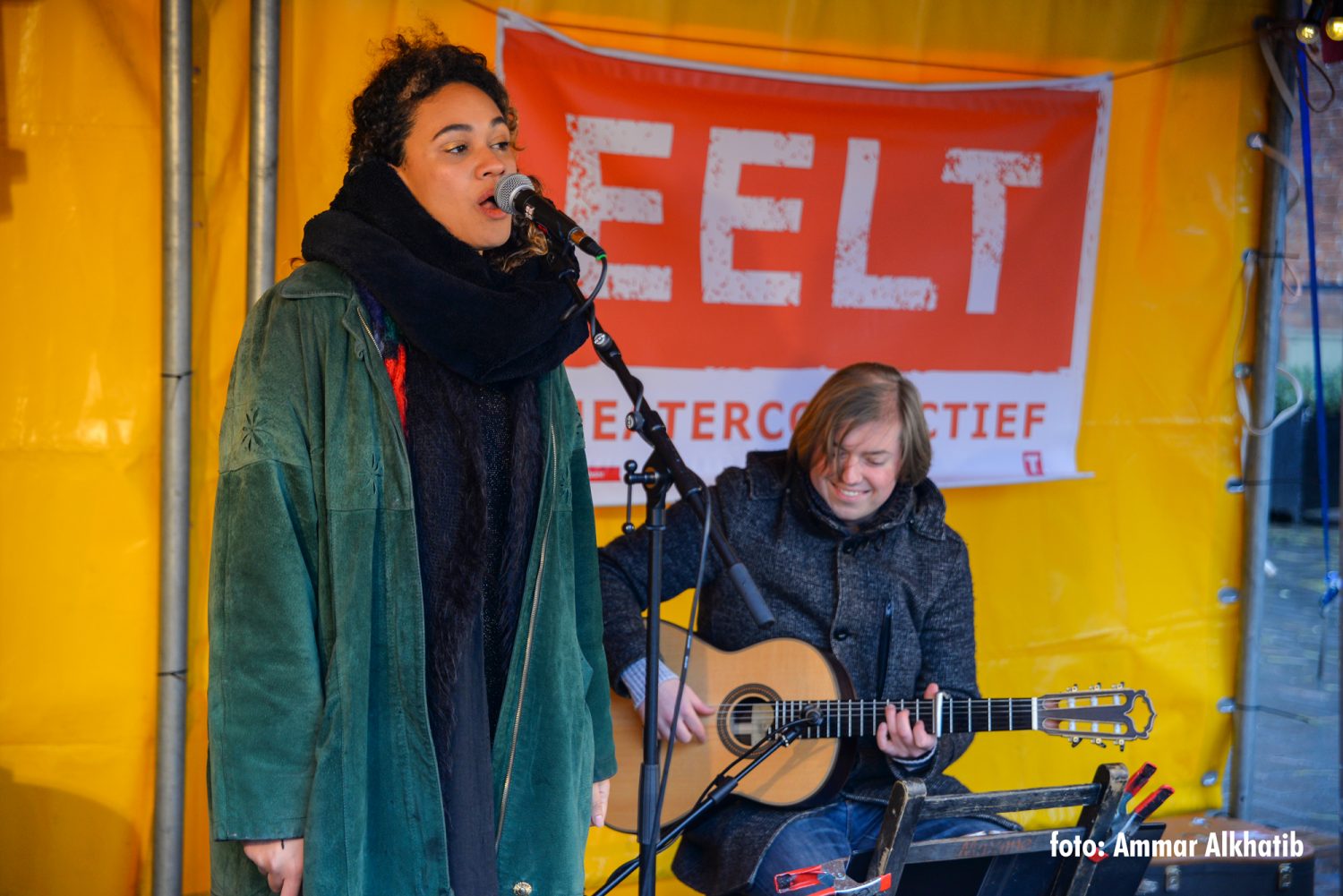 Op zaterdag 14 december tussen 12:30 en 16:30 toverde EELT Theatercollectief het Raadhuisplein in Waalwijk om tot een warm bad. Want alles wat we nodig hebben in deze donkere dagen is LIEFDE! Er waren beminnelijke liedjes van singer songwriter Claudy Wolfs, het koor De Vrolijke Noot tilt u op naar hogere kerstsferen. Roel Kox, Cameron Millar, Bart van Gerwen en Tessa de Graaf van EELT theatercollectief brachten de commedia dell’arte voorstelling “Boss dell Corno” over alle verwarring die de liefde kan veroorzaken. Voor de liefhebber van klassieke muziek was er de prachtige stem van sopraan Nienke Nasserian. Bezoekers kregen gratis chocolademelk en Rianne Theeuwes gaf een workshop liefdesgedichten en kersttekeningen voor de kinderen.