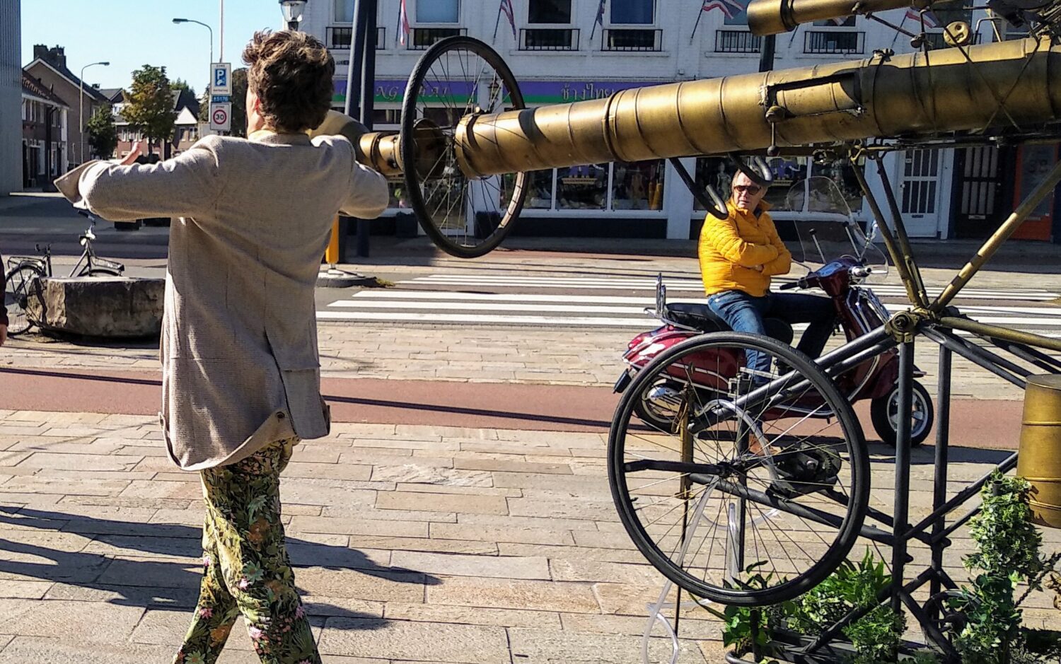 Dat deden we in tastbare vorm; we lieten zien wat ons de laatste periode bezighield in de vorm van het huiselijke decor van Woning (het toneelstuk dat we tijdens gLoBe opvoerden), het conversation piece De Windmobiel mét filmvertoning over de schoonheid van de wind. En we gaven wat extra kleur aan de Kanaalzone met onze eigen Dokter Klopta.
